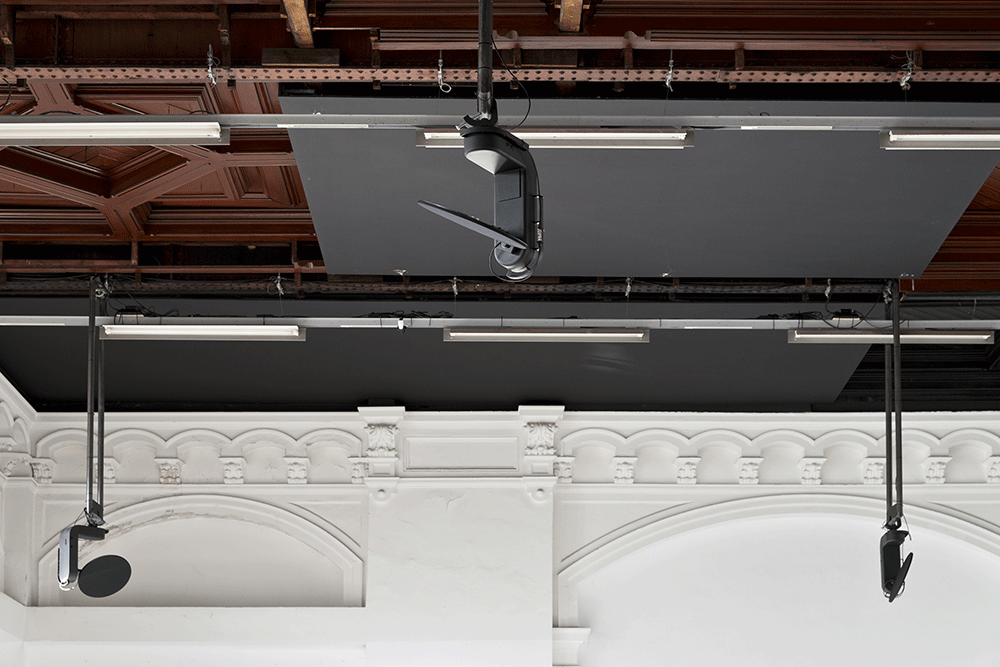Directional Speakers, Moving Arm, Audio Interface, DMX, Interface, Computer